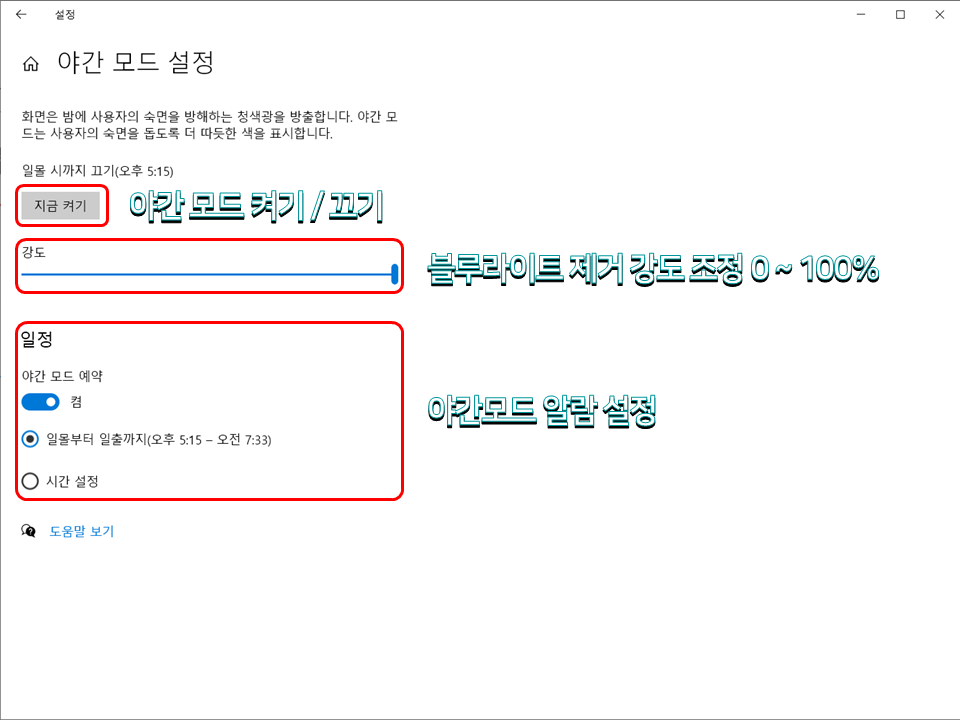 Windows 10 내장 기능인 야간 모드 - 모니터 블루라이트로부터 시력 보호