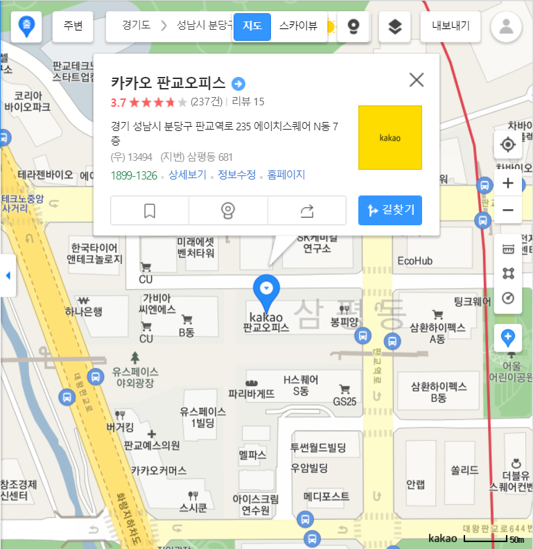 - /link/map/위도,경도 👉 map.kakao.com/link/map/37.402056,127.108212